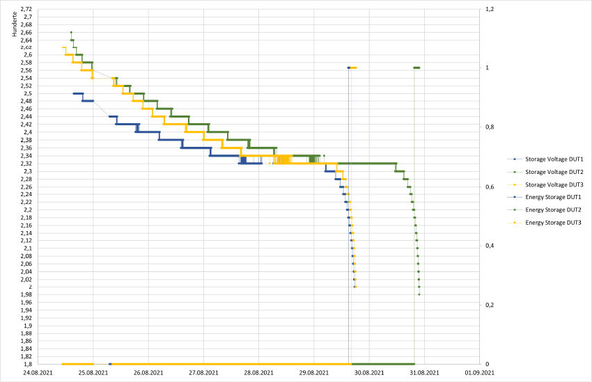 3) Illustration des courbes de décharge de la batterie à partir de différents points de départ et de l’activation du bit ES